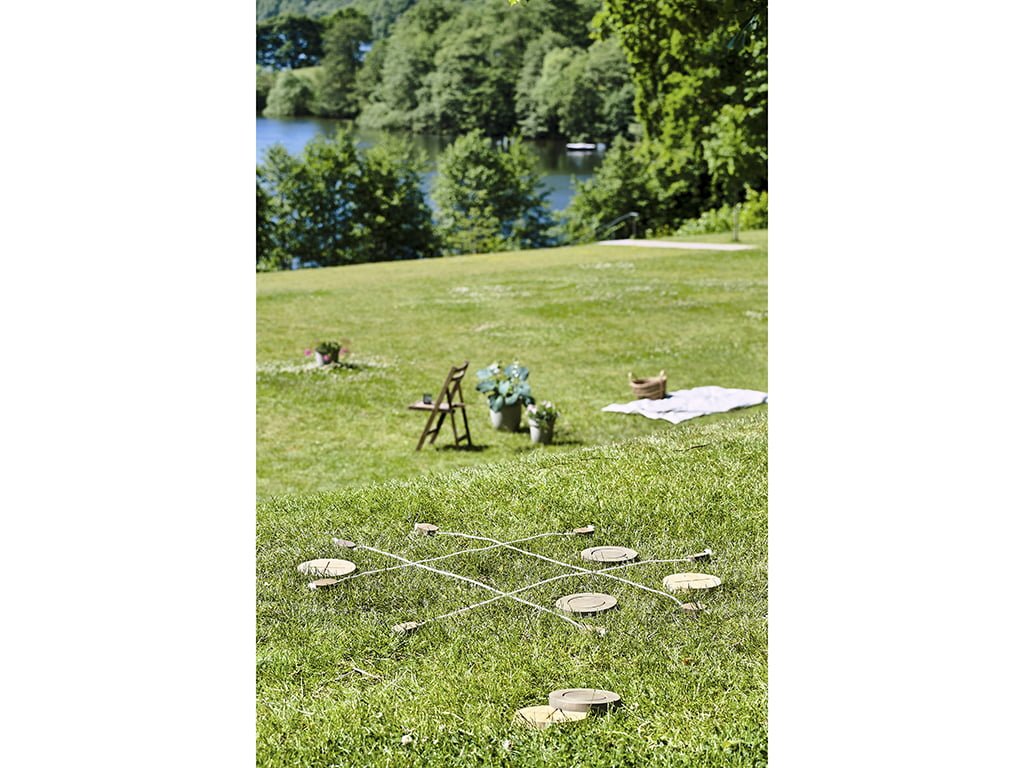 Spil det hyggelige kryds og bolle i haven, i sommerhuset, på stranden eller til havefesten. Spillet består af tre brikker til hver spiller og går ud på at få sine brikker placeret på stribe før modstanderen. Der medfølger spilleregler på dansk og engelsk, bomuldssnor til opsætning af spillet samt en lækker stofpose til transport og opbevaring af spillet. Spildelene er fremstillet af robust og smukt bejdset gummitræ med et flot, naturligt udtryk, idet træets nuancer og struktur varierer fra del til del. Tør delene over med en fugtig klud efter brug og opbevar dem altid i tør og rengjort stand, så holder spillet længere og giver større fornøjelse.