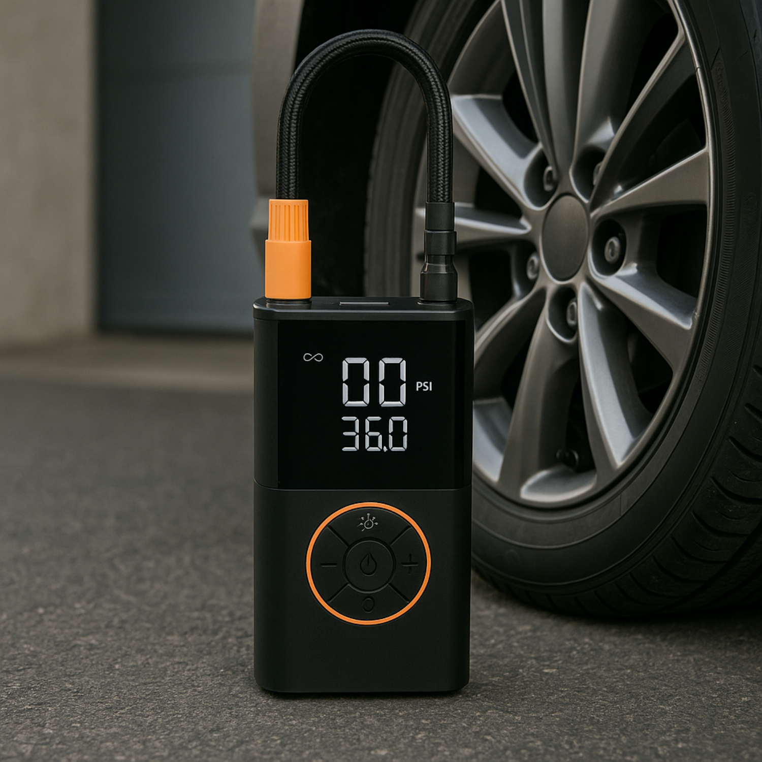 Den kompakte størrelse gør det nemt at have luftkompressoren med i tasken eller handskerummet, så du altid er forberedt. Fra flade dæk til perfekt tryk – hurtigt, sikkert og uden besvær.