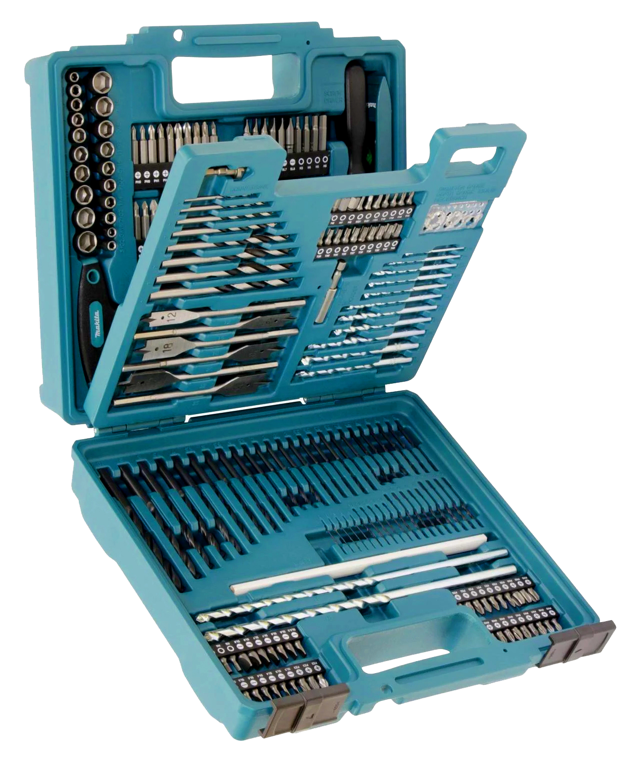 Makita bits- og borsæt i professionel kvalitet. Hele 212 dele i overskuelig plastkuffert – med alt, hvad du behøver til opgaver i træ, metal og sten.