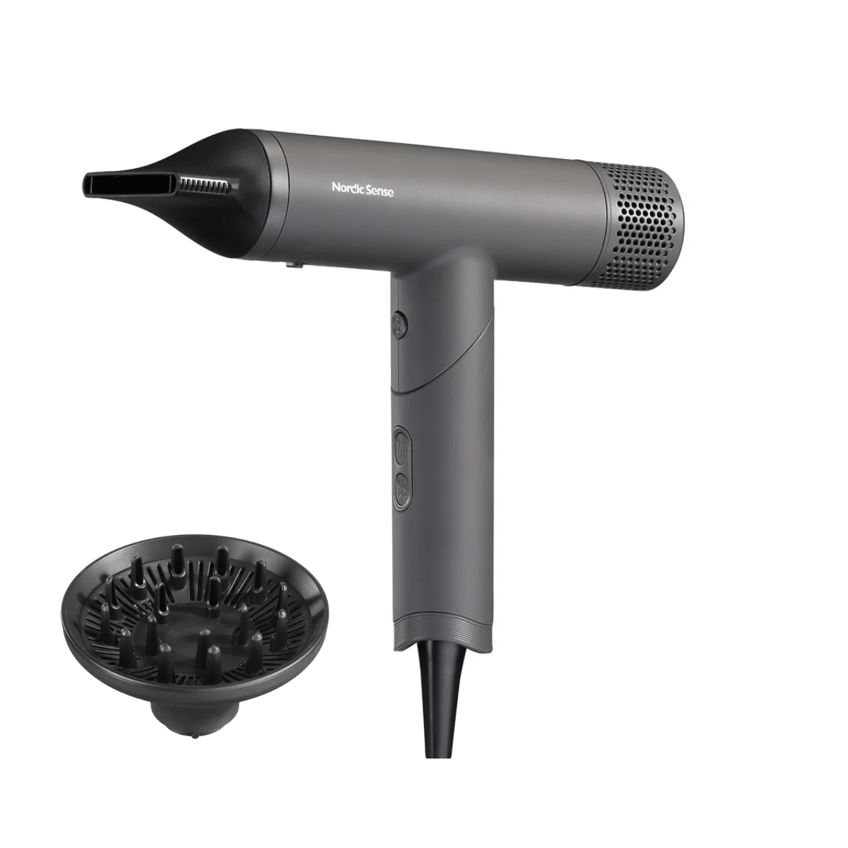 Få flot og velplejet hår – uanset om du er hjemme eller på farten – med denne praktiske hårtørrer fra Nordic Sense.