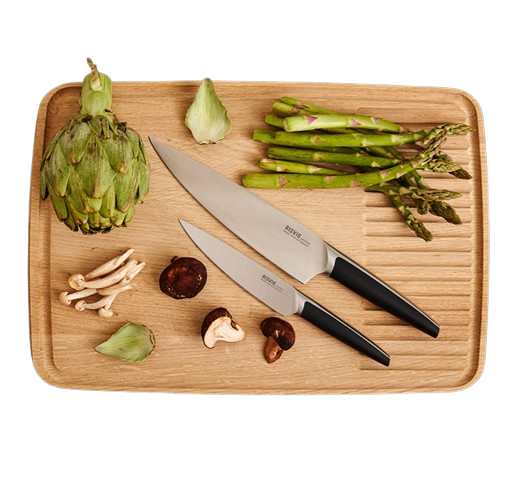 Risvig, Skærebræt 45×30 cm. + 2 kokkeknive 15+20 cm.