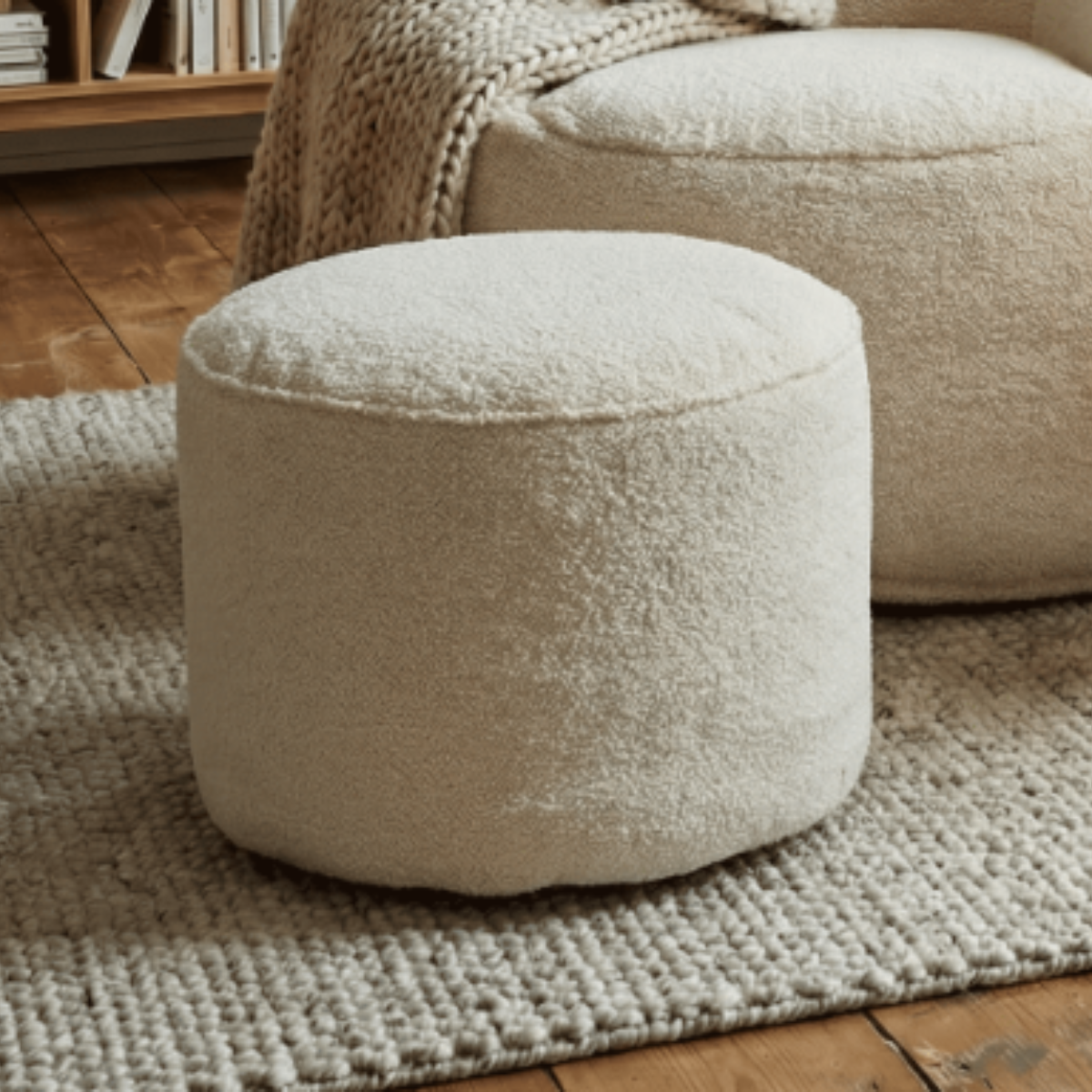 Den medfølgende puf fuldender oplevelsen. Brug den som fodskammel for maksimal afslapning, eller som en ekstra siddeplads, når der er gæster. Ligesom stolen er puffen fyldt med koldskum og beklædt med det bløde teddy-stof, hvilket giver et ensartet og eksklusivt udtryk.